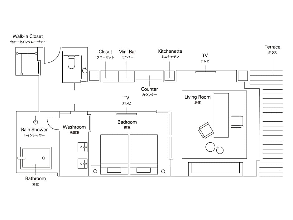 This spacious suite is consisted of of 1 living room, 1 separate bedroom and 1 bathroom with a bath and free toiletries. This air-conditioned suite consists of a dining area, a flat-screen TV with satellite channels a mini-bar and a terrace. The unit offers 2 beds.